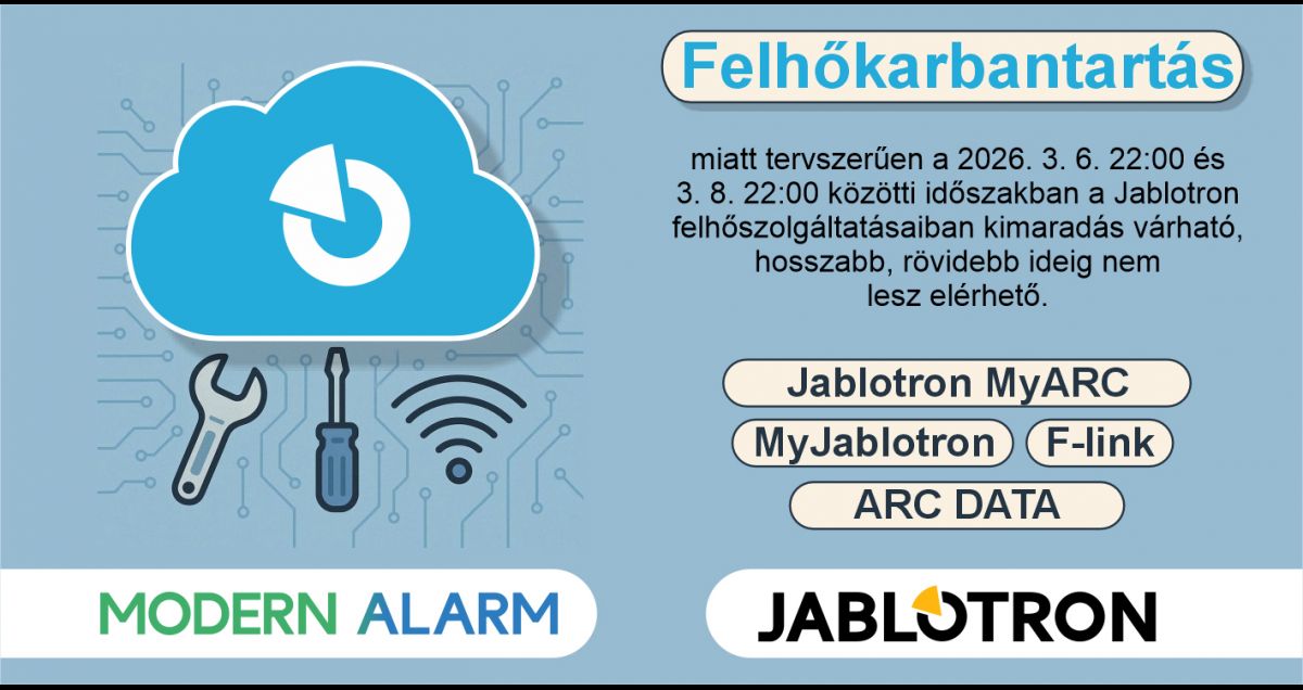 Jablotron Felhőkarbantartás 2026. március 6-8.